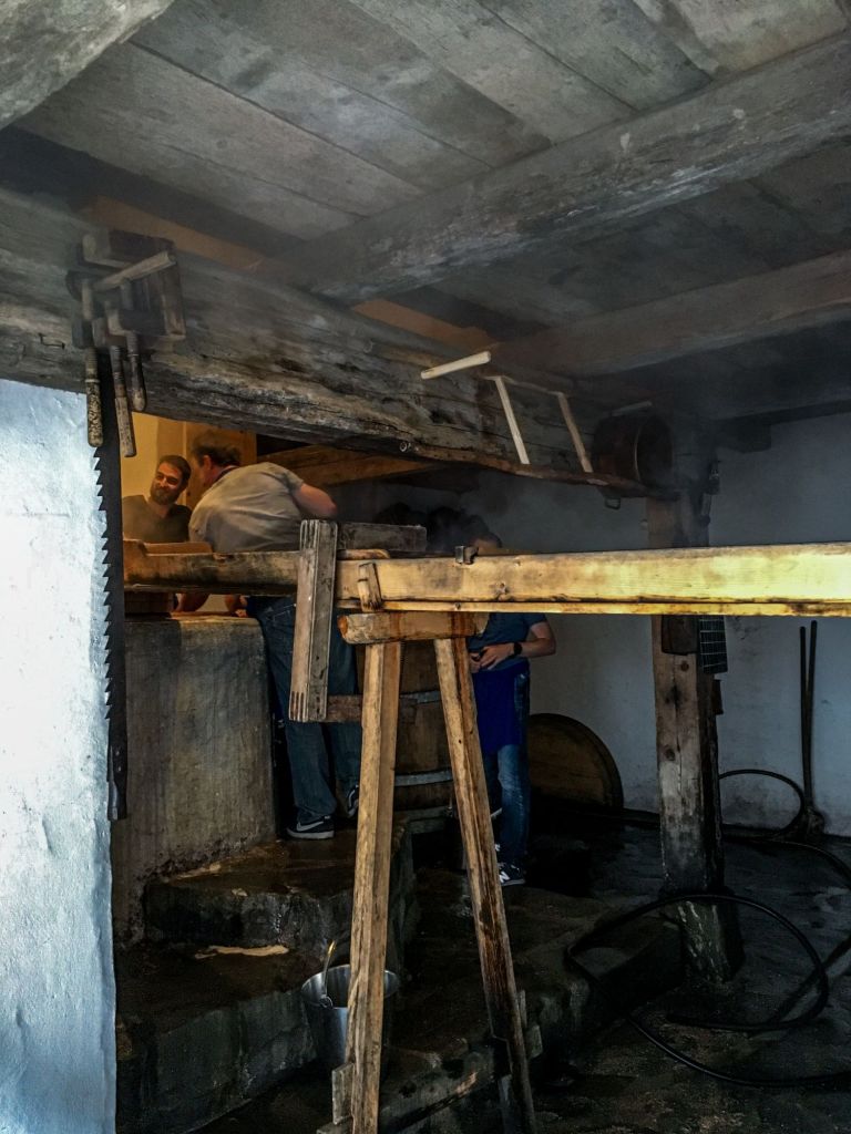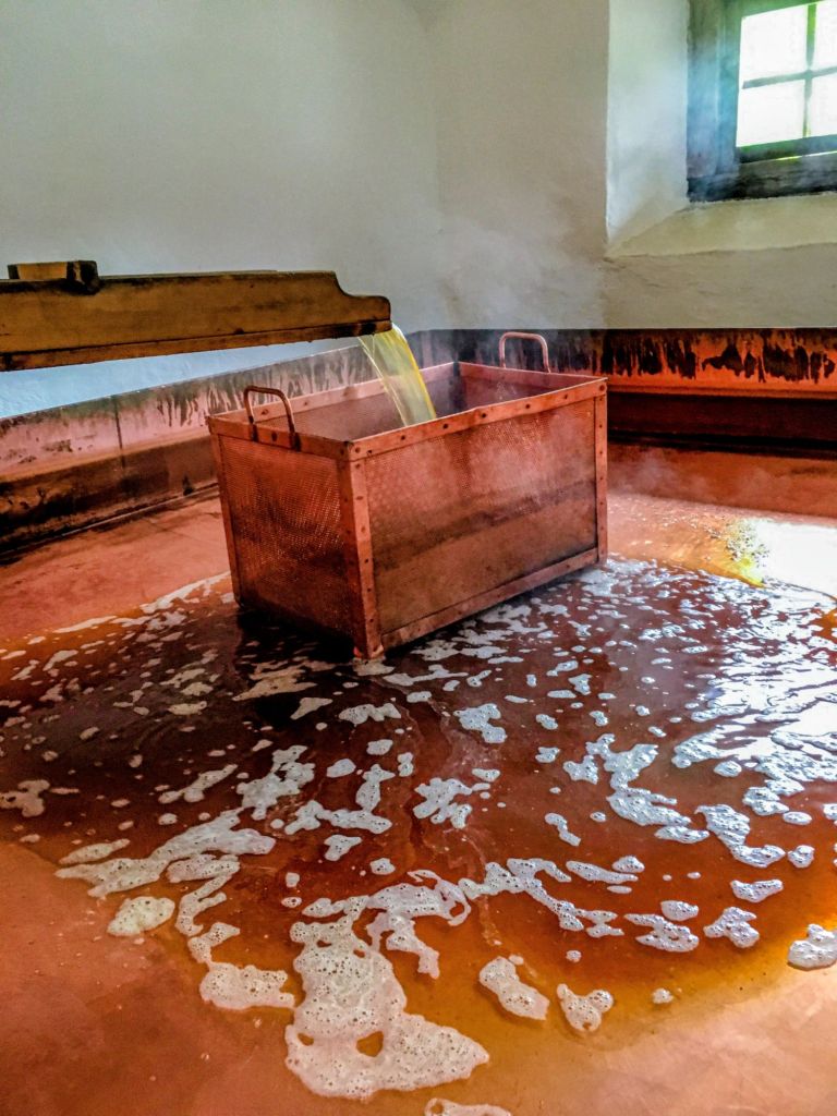 Morgens um 9.00 Uhr geht’s los: Der Braumeister holt die Gruppe am Eingang des Museums ab und drückt jedem einen Steinkrug und eine Schürze in die Hand, die man am Ende als Souvenir mit nach Hause nehmen kann. Darauf folgt eine kurze Einführung über den Ort an dem man sich befindet, sowie über die einzelnen Gebäude – vorrangiges Thema ist das Wirtshaus „Zum Wofen“, wozu auch die historische Schöpfbrauerei gehört. Hier wird gebraut wie vor 300 Jahren.